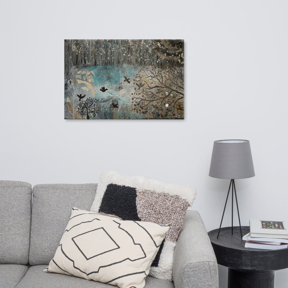 This mixed media abstract painting, Vast life was painted by Julia Tomtania. Looking to add a little flair to your room or office? Look no further - this canvas print has a vivid, fade-resistant print that you're bound to fall in love with.